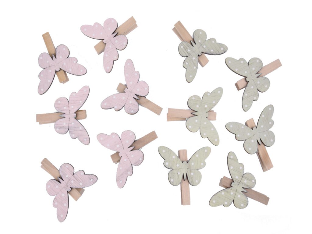 Kolíček s motýlem, MDF, růžová/zelená, 20x14x1cm|Ego dekor
