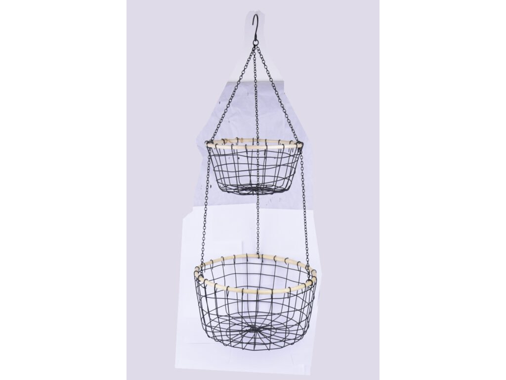 Košík závěsný, 2 patra, kov, černá/natur, 31x74x31cm, ks|Ego dekor