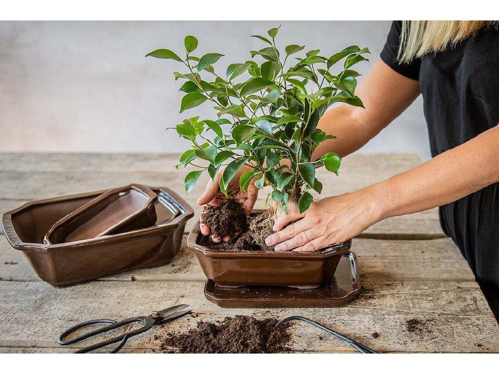 Květináč BONSAI, keramický, hnědý, 26x20x7,5cm|Esschert Design