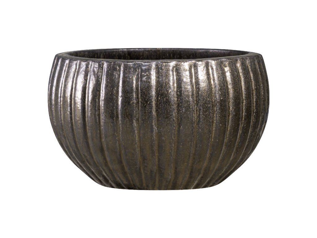 Elegantní mrazuvzdorný květináč z ručně vyráběné kameniny s jemnou glazurou.