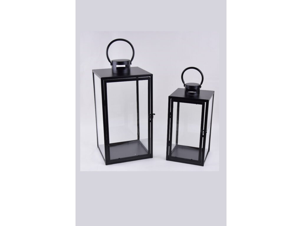 Lucerna hranatá SQUARE, kov/sklo, černá, 23x55x22/18x42x18cm|Ego dekor