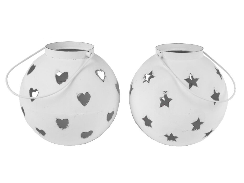 Lucerna srdce/hvězdy, bílá, 20x19,5x20cm|Ego dekor