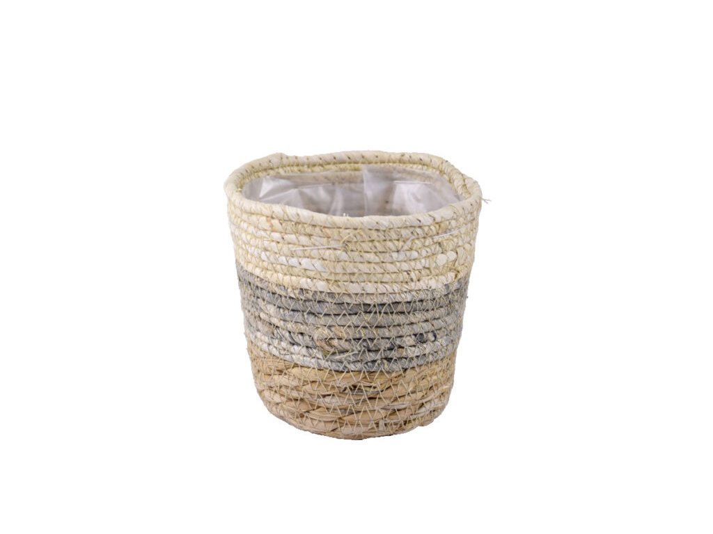 Obal na květináč, kukuřice na kovovém rámu, přírodní/šedá, pr.12x12cm|Ego dekor