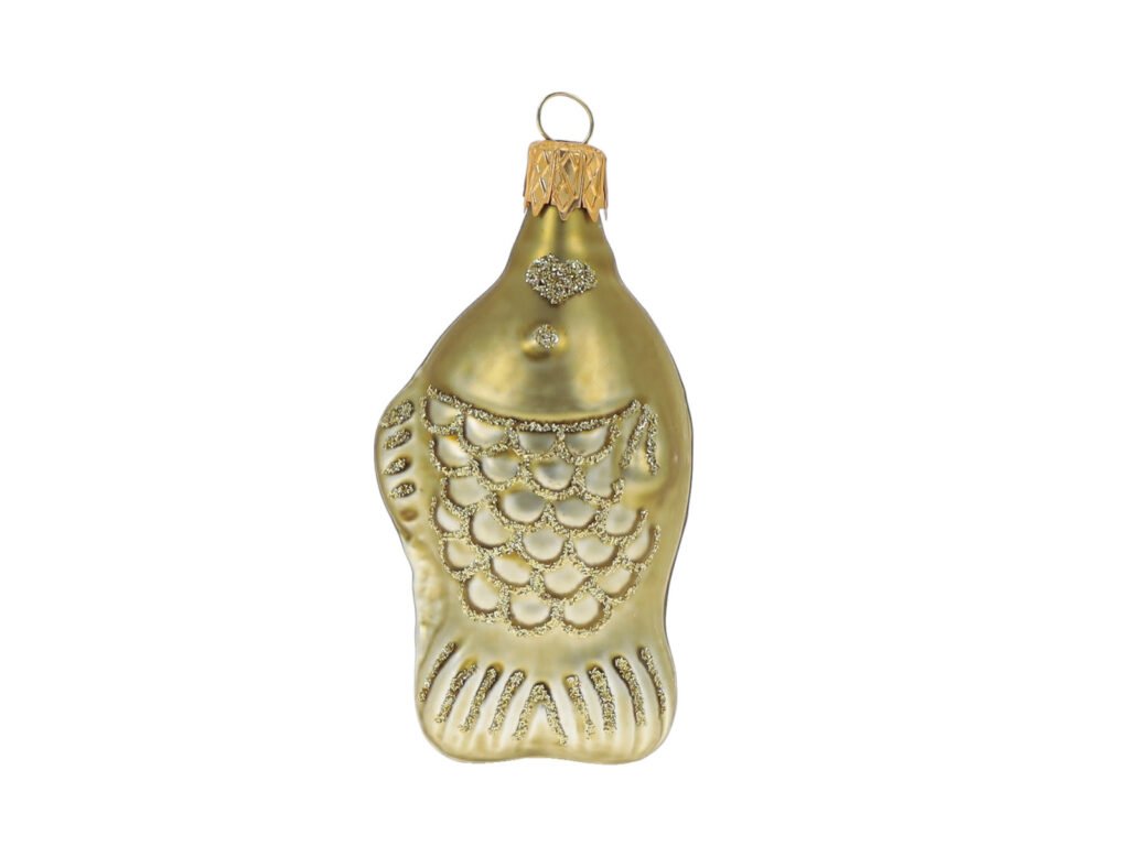 Ozdoba vánoční, kapr, zlatá/zelená/matná, 7cm
