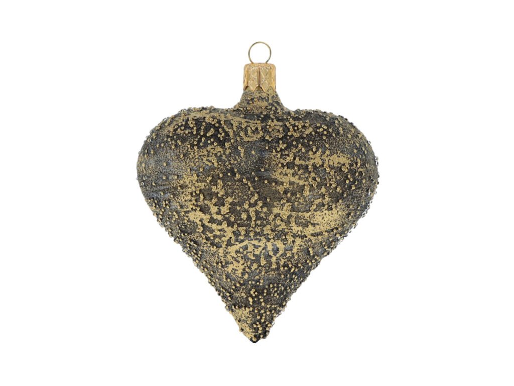Ozdoba vánoční, srdce, černá/zlatá, 9cm