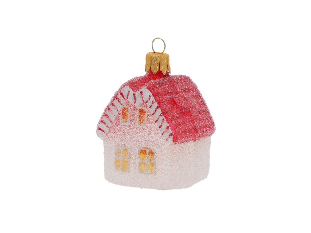 Ozdoba vánoční domeček, červená, 6cm