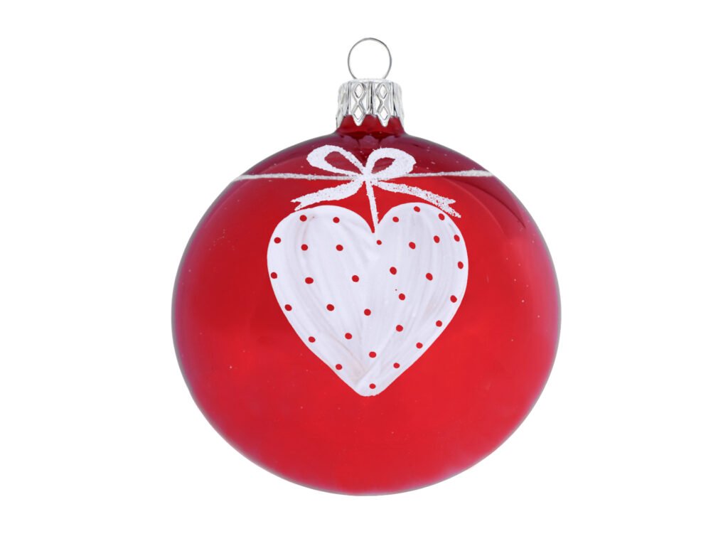 Ozdoba vánoční koule, srdce s mašlí, 8cm