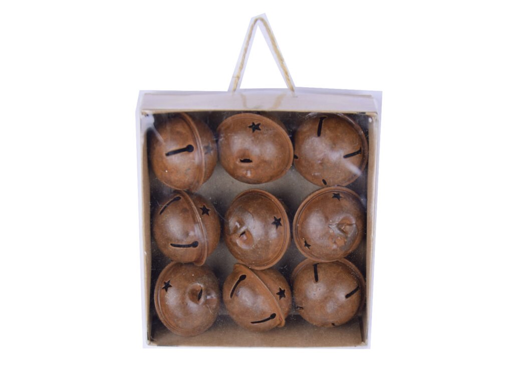 Přízdoba rolnička METAL, kov, hnědá, pr.3,5cm, box 9ks|Ego dekor