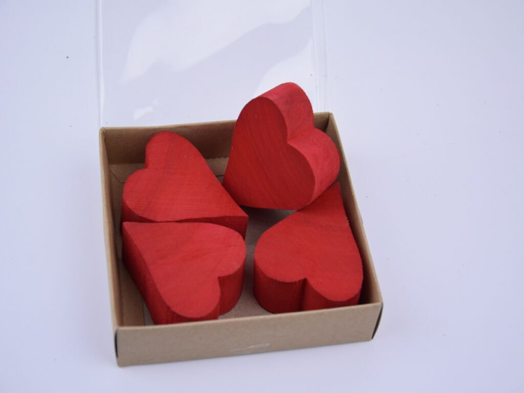 Přízdoba srdce, přírodnina, červená, 5,5x6,5x3cm, box 4ks|Ego dekor