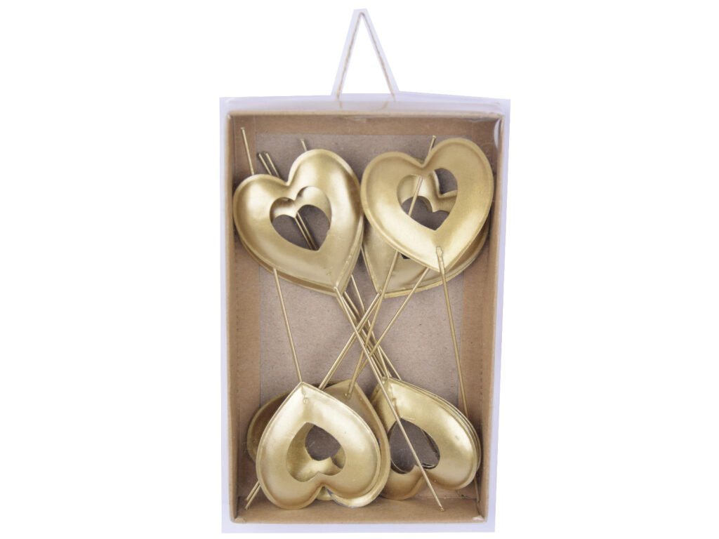 Přízdoba srdce METAL, zapichovací, kov, zlatá, 6x17x1,5cm, box 12ks|Ego dekor