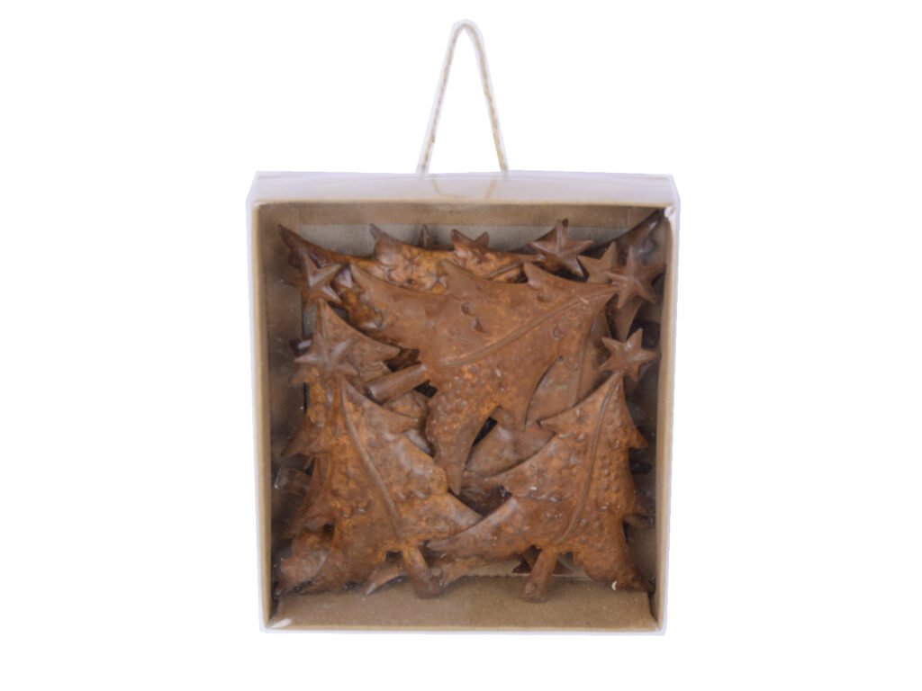 Přízdoba stromek METAL, kov, hnědá, 7x8,5x1cm, box 12ks|Ego dekor