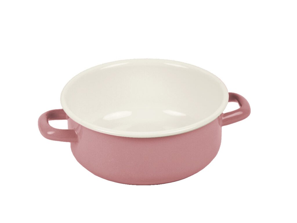 Rendlík ENAMEL, pr.16x7cm (pr. s uchy 21cm), smalt, růžová/bílá|Ego dekor