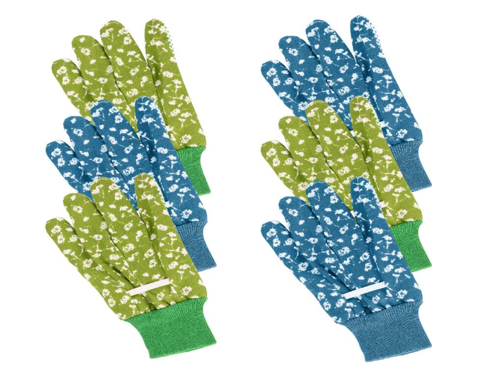 Rukavice zahradní dámské potisk květy, zelená/modrá 2T|Esschert Design