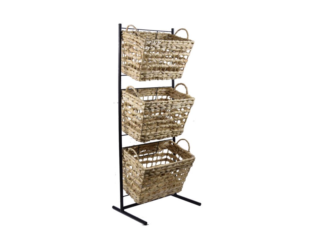 Stojan s košíky, 3 patra, kov/tráva, natur/černá, 39x105x42cm, ks|Ego dekor