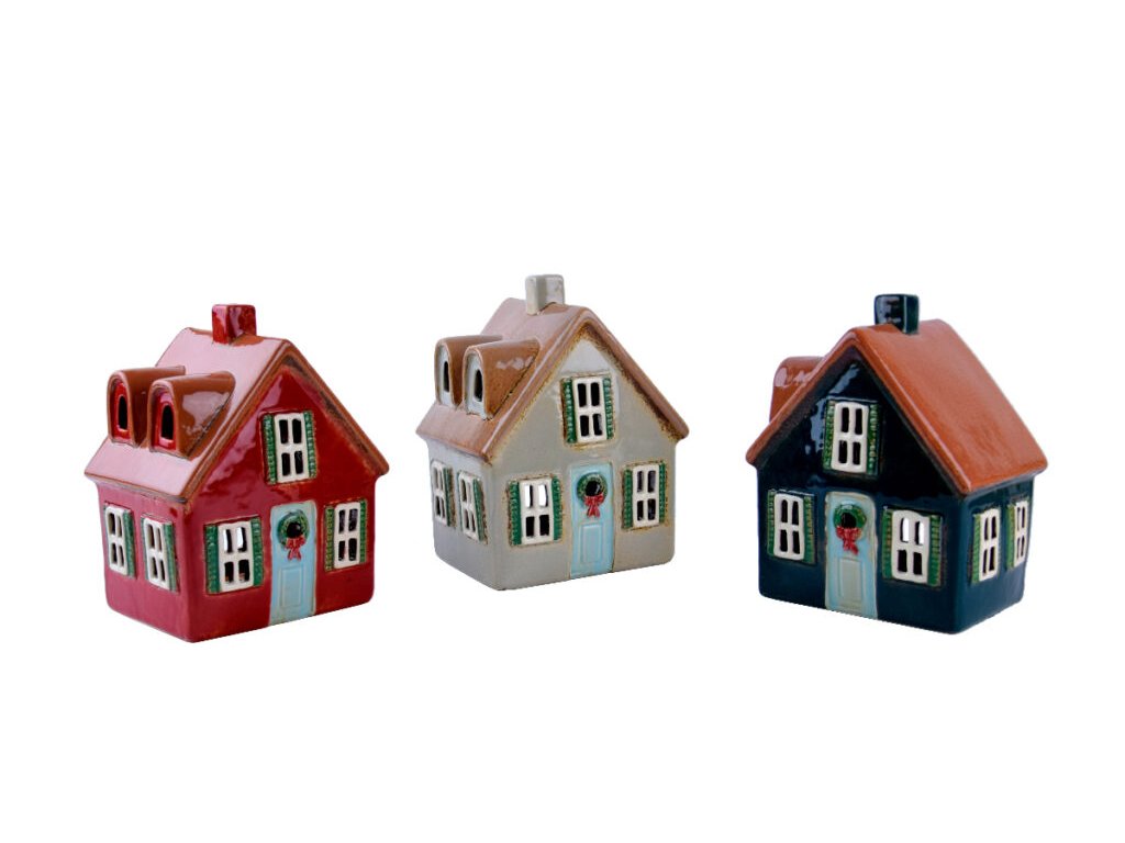 Svícen domeček, keramika, mix, 13,5x17,5x10,5cm|Ego dekor