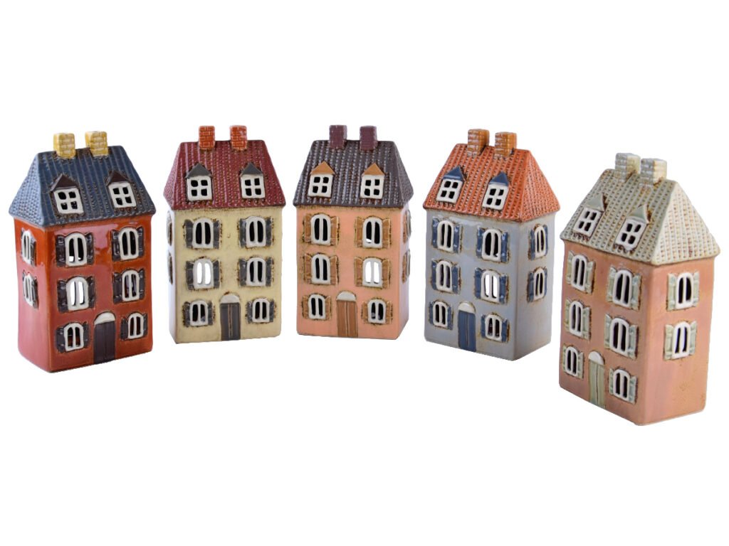 Svícen domeček, keramika, mix, 13,5x22x9,5cm|Ego dekor