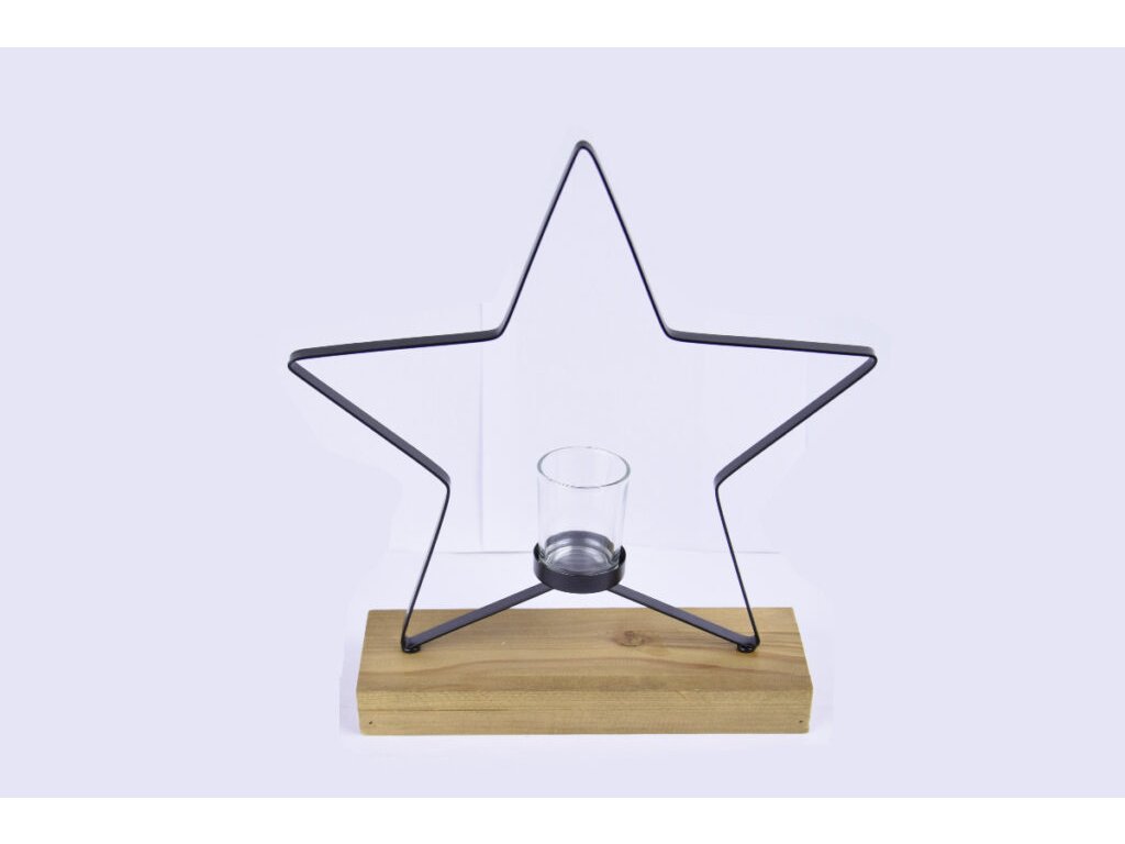 Svícen hvězda IRON, kov/dřevo/sklo, natur/černá, 30x33x8cm, ks|Ego dekor