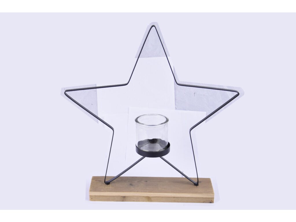 Svícen hvězda IRON, kov/dřevo/sklo, natur/černá, 40x42x8cm, ks|Ego dekor