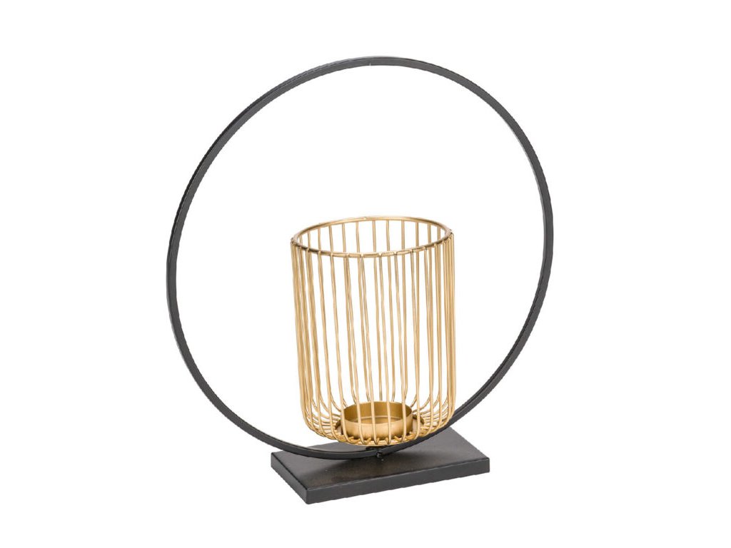 Svícen kruh, černá/zlatá, pr. 28cm
