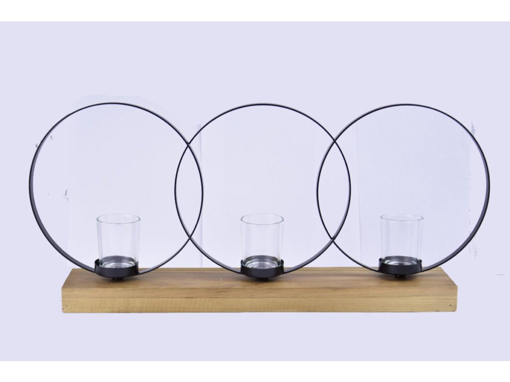 Svícen kruh na 3 svíčky IRON,, kov/dřevo/sklo, 53x24x8cm, ks|Ego dekor