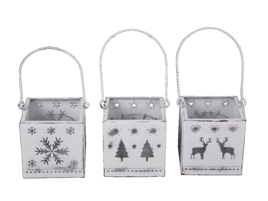 Svícen/Lucerna s patinou strom/hvězda/jelen, bílá,|Ego dekor