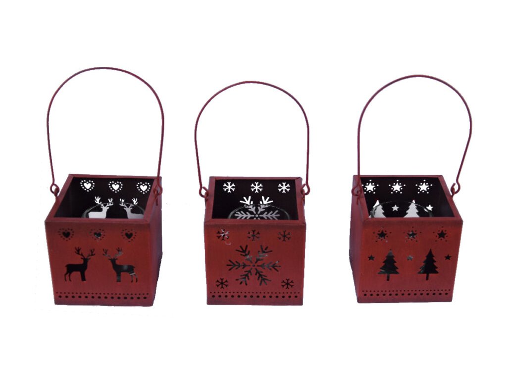 Svícen/Lucerna strom/vločka/jelen, červená, 7,5x8x|Ego dekor