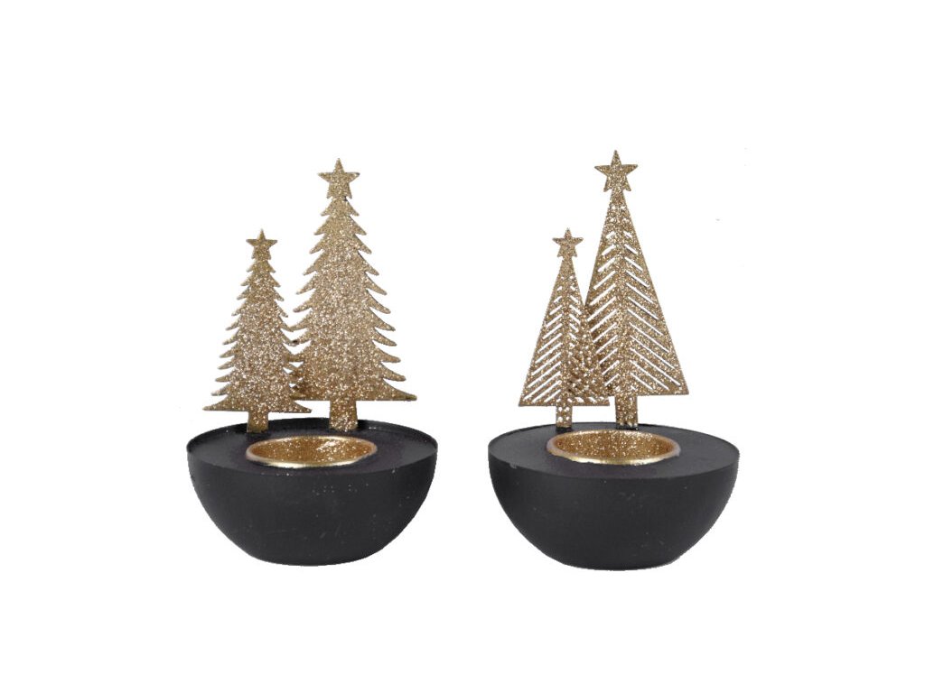 Svícen/miska dekorativní Vánoční les, černá/zlatá,|Ego dekor