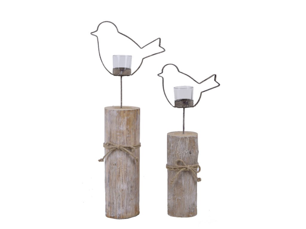 Svícen na špalku ptáček, hnědý, M|Ego dekor