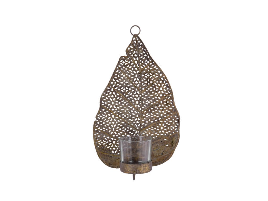 Svícen nástěnný List, zlatá, 14x24,5x6cm, ks|Ego dekor