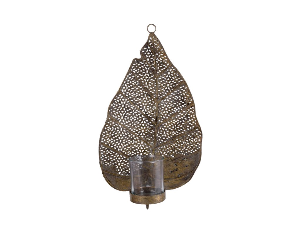 Svícen nástěnný List, zlatá, 19x33,5x7,3cm, ks|Ego dekor