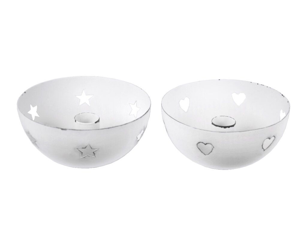 Svícen s patinou srdce/hvězdy, bílá, 14x6x14cm|Ego dekor