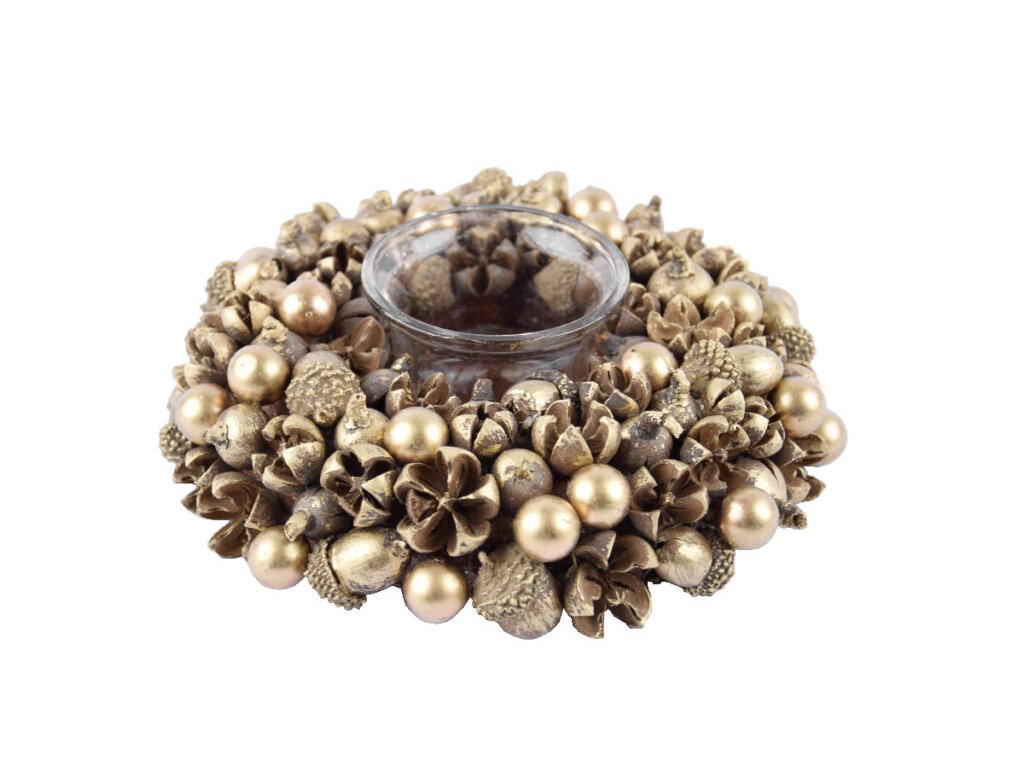 Svícen s žaludy ACORN, přírodnina, zlatá, pr.17x6cm, ks|Ego dekor