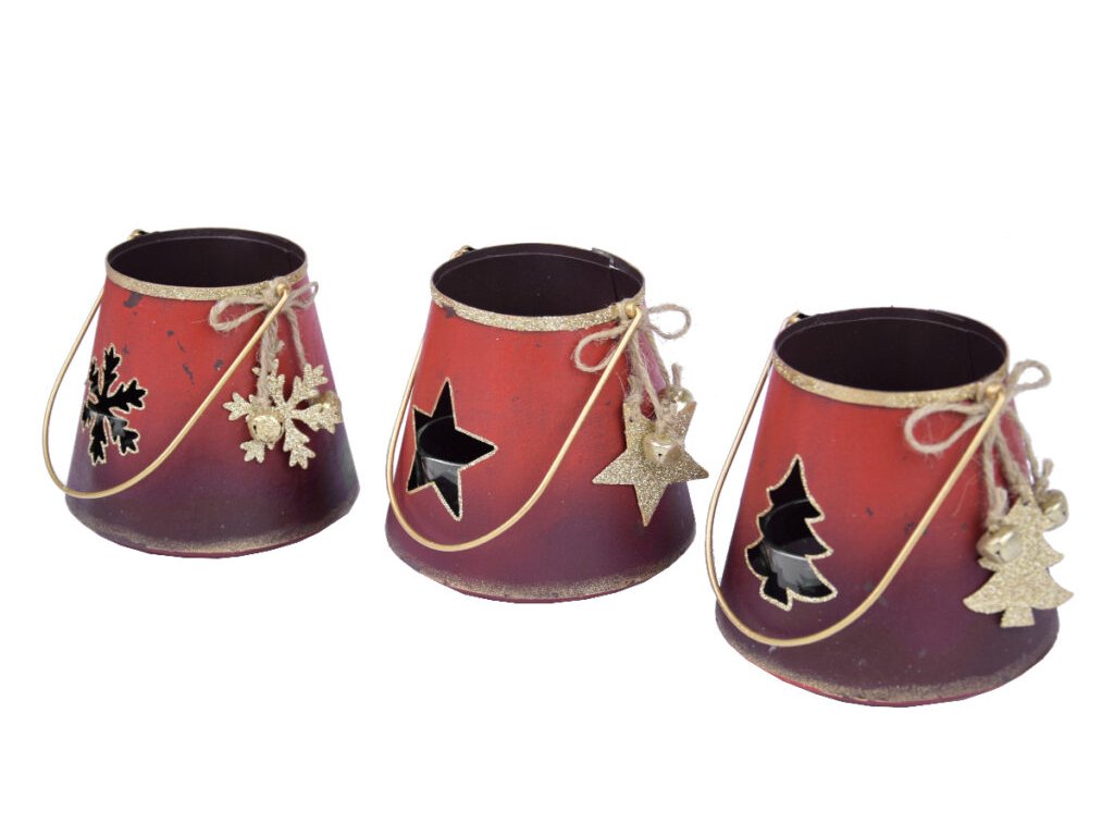 Svícen stromek/hvězda/vločka, červená, 12x11,5x13c|Ego dekor