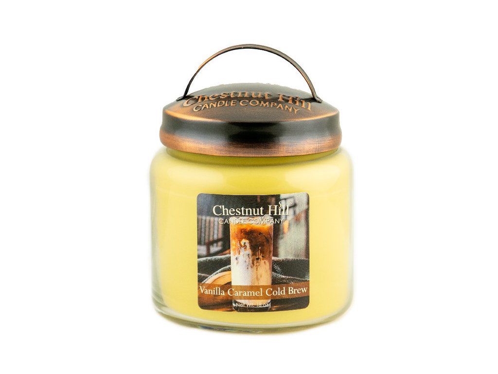 Svíčka 0,51 Kg VANILLA CARAMEL COLD BREW, aromatická, ve skleněné dóze, 2 knoty
