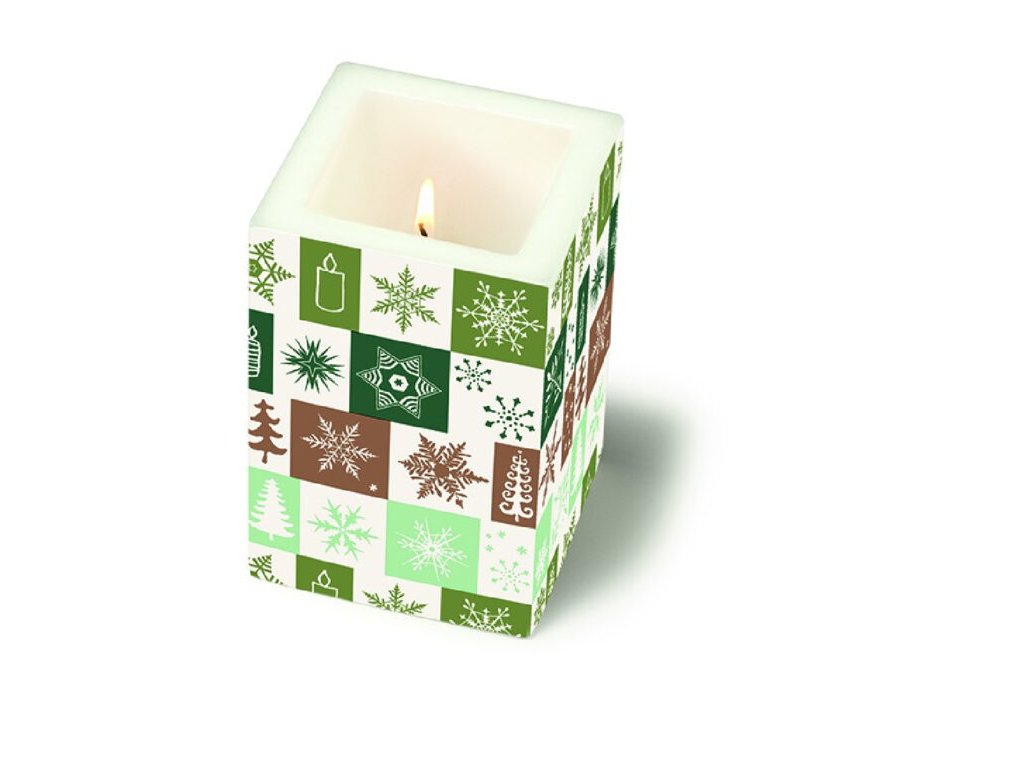 Svíčka - vánoční vzor, zelený 8x8x12