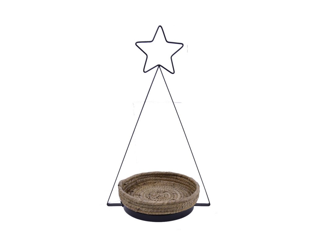 Tác se stromkem a hvězdou XMAS, kov/tráva, natur/černá, 30x50x24cm, ks|Ego dekor