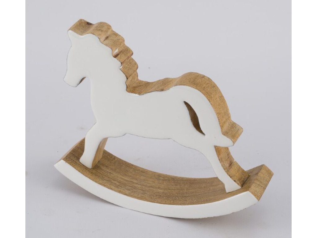 VDP Koník houpací, mangové dřevo, bílá/přírodní, 20x5x17cm, ks