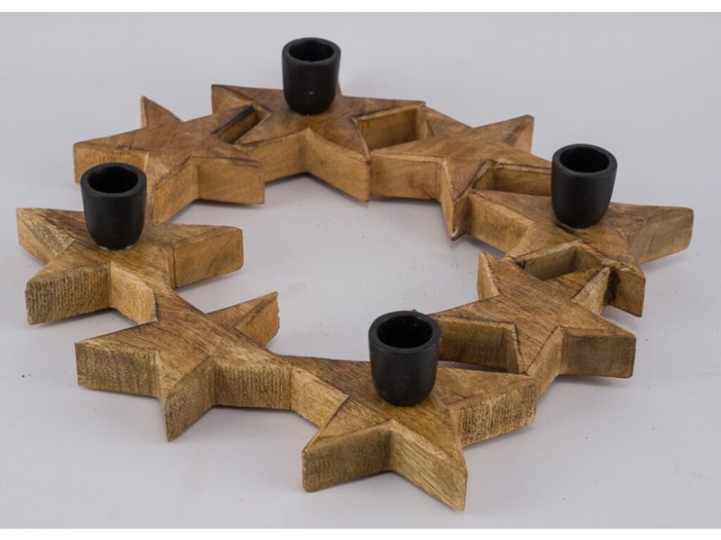 VDP Svícen HVĚZDA, na 4 svíčky, mangové dřevo, přírodní/černá, 28,5x28,5x6cm, ks
