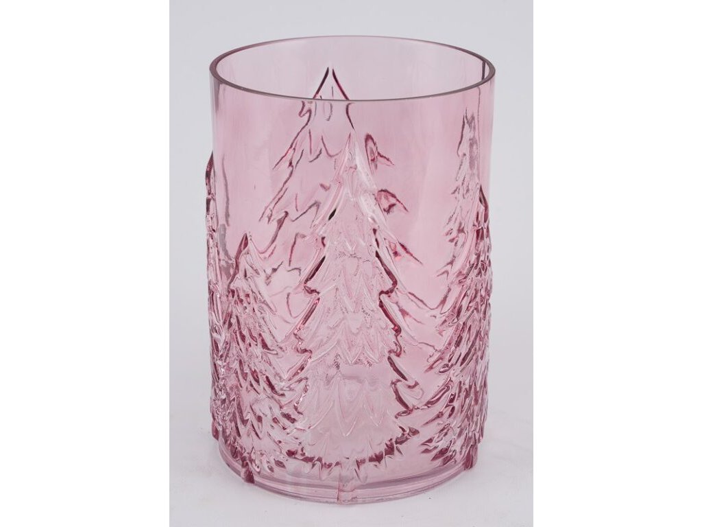 VDP Svícen na čajovku JEDLE, sklo, růžová, 15x15x23cm, ks