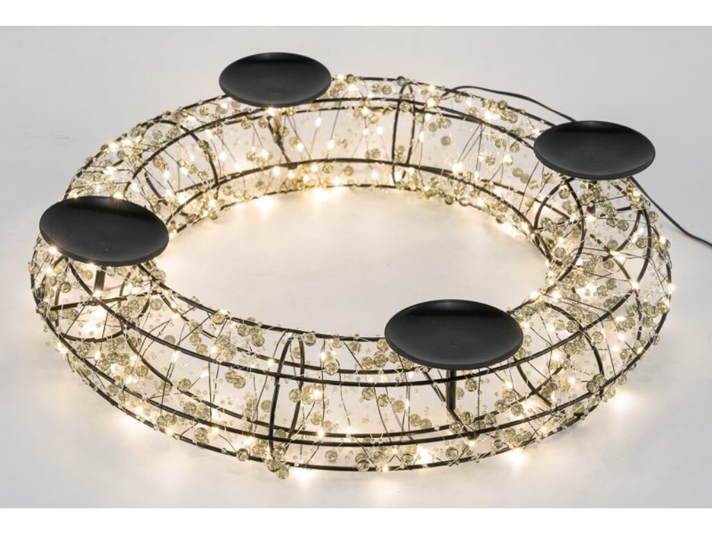 VDP Věnec se svícnem, adventní, 150LED, kov, bílá|teplá, 30x30x8,5cm, ks