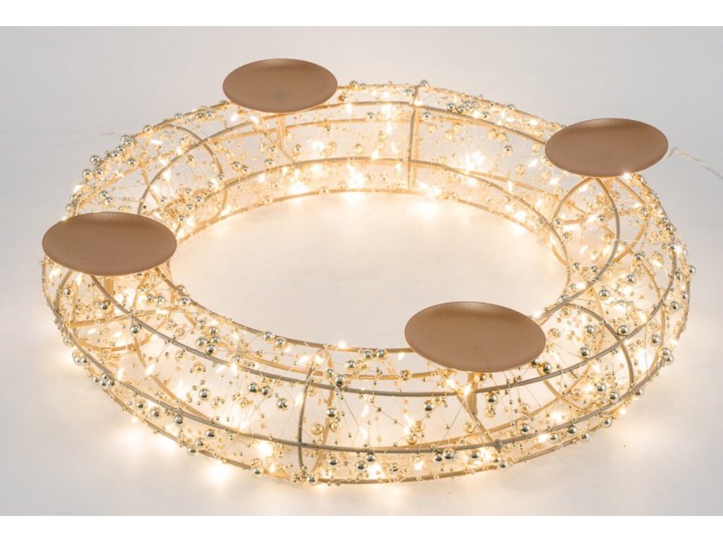 VDP Věnec se svícnem, adventní, outdoor, 200LED, kov, zlatá, 40x40x9cm, ks