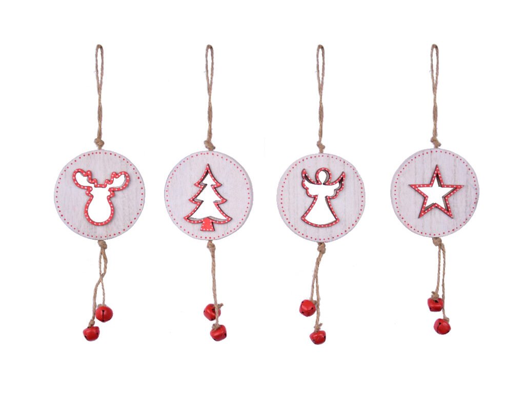 VDT Závěs stromek/hvězda/anděl/jelen s rolničkou, dřevo, bílá, 8x24x1cm