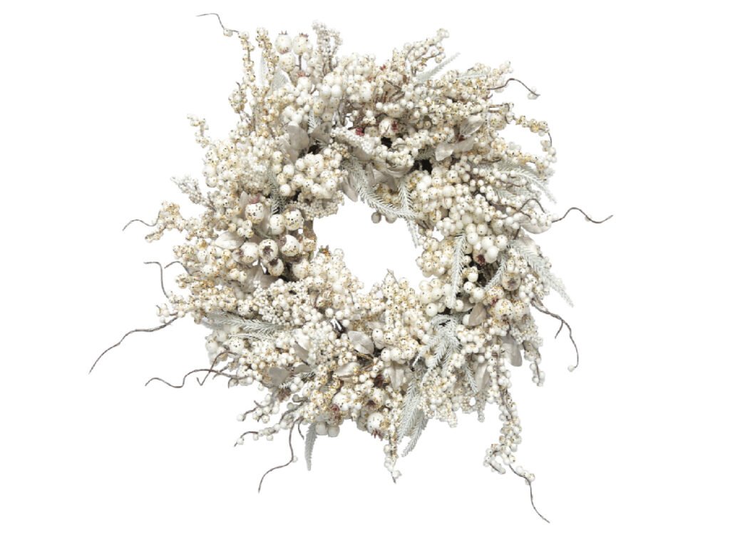 Věnec bobule, plast, bílá, 56x56x14cm, ks|Ego dekor