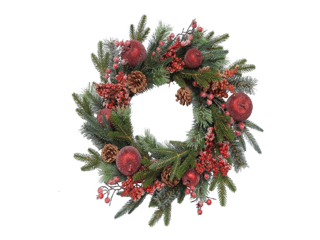 Věnec jablko/bobule, plast, zelená/červená, 56x56x13cm, ks|Ego dekor