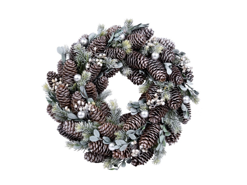 Věnec PINE s lístkami, přírodní/stříbrná/bílá, 35x|Ego dekor