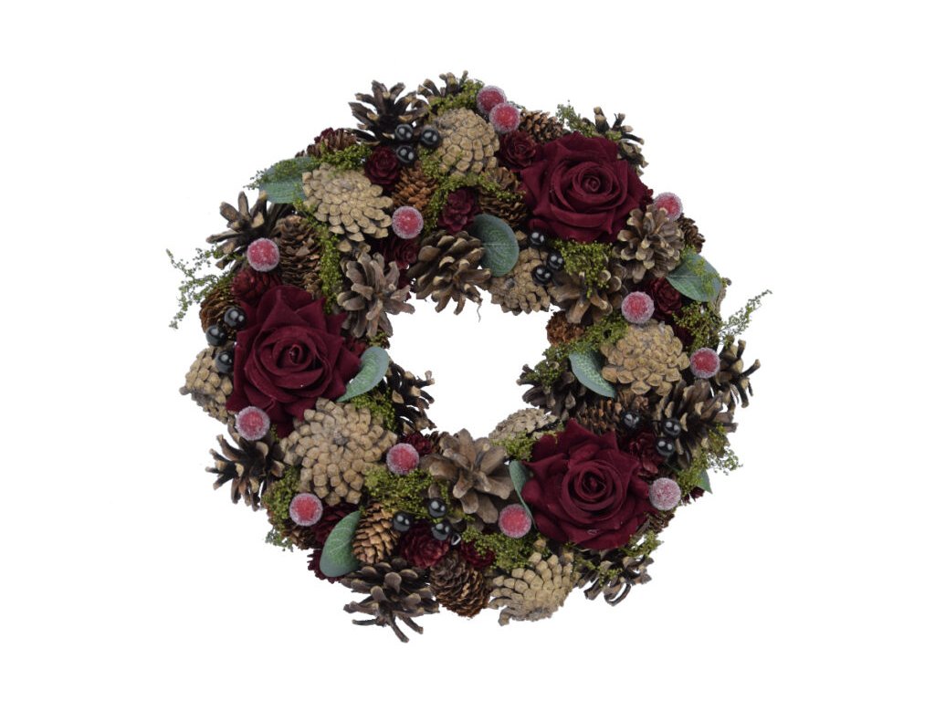 Věnec PINE s růžemi, přírodní/červená/zelená, 28x2|Ego dekor