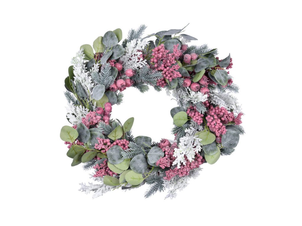 Věnec s eukalyptem PINK, plast, zelená/starorůžová, pr.45x15cm, ks|Ego dekor