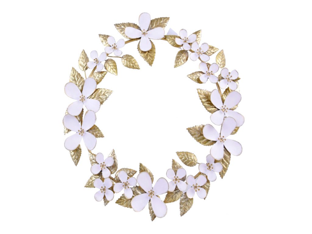 Věnec závěsný, kov, zlatá/bílá, pr.36x3,5cm, ks|Ego dekor