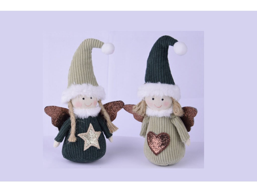 VZ VDT Dekorace andělka se srdcem/hvězdou, textil, béž./tm. zel., 12x19x6cm