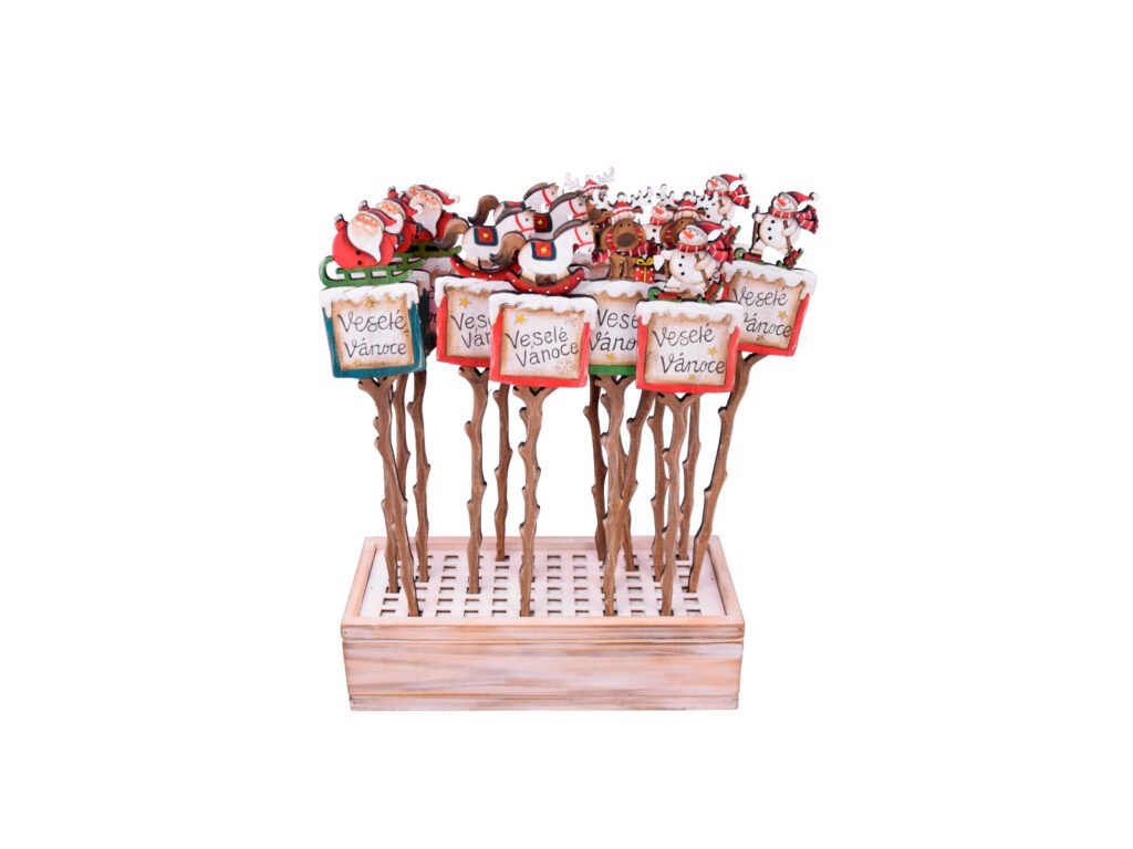 Zápich cedulka XMAS, dřevo, zel./červ./bí.,28x40x10,S24, FSC 100%|Ego dekor